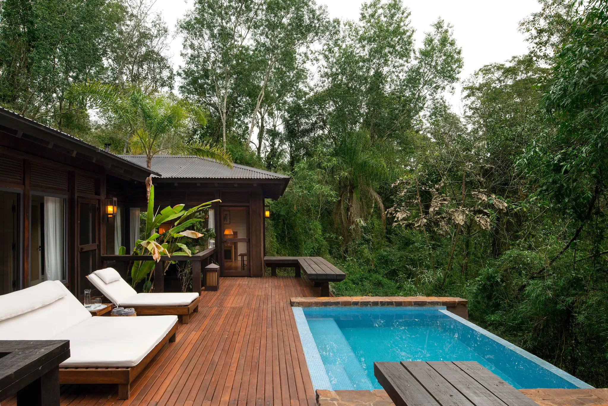 - Piscine et détente : espaces de relaxation en pleine jungle
