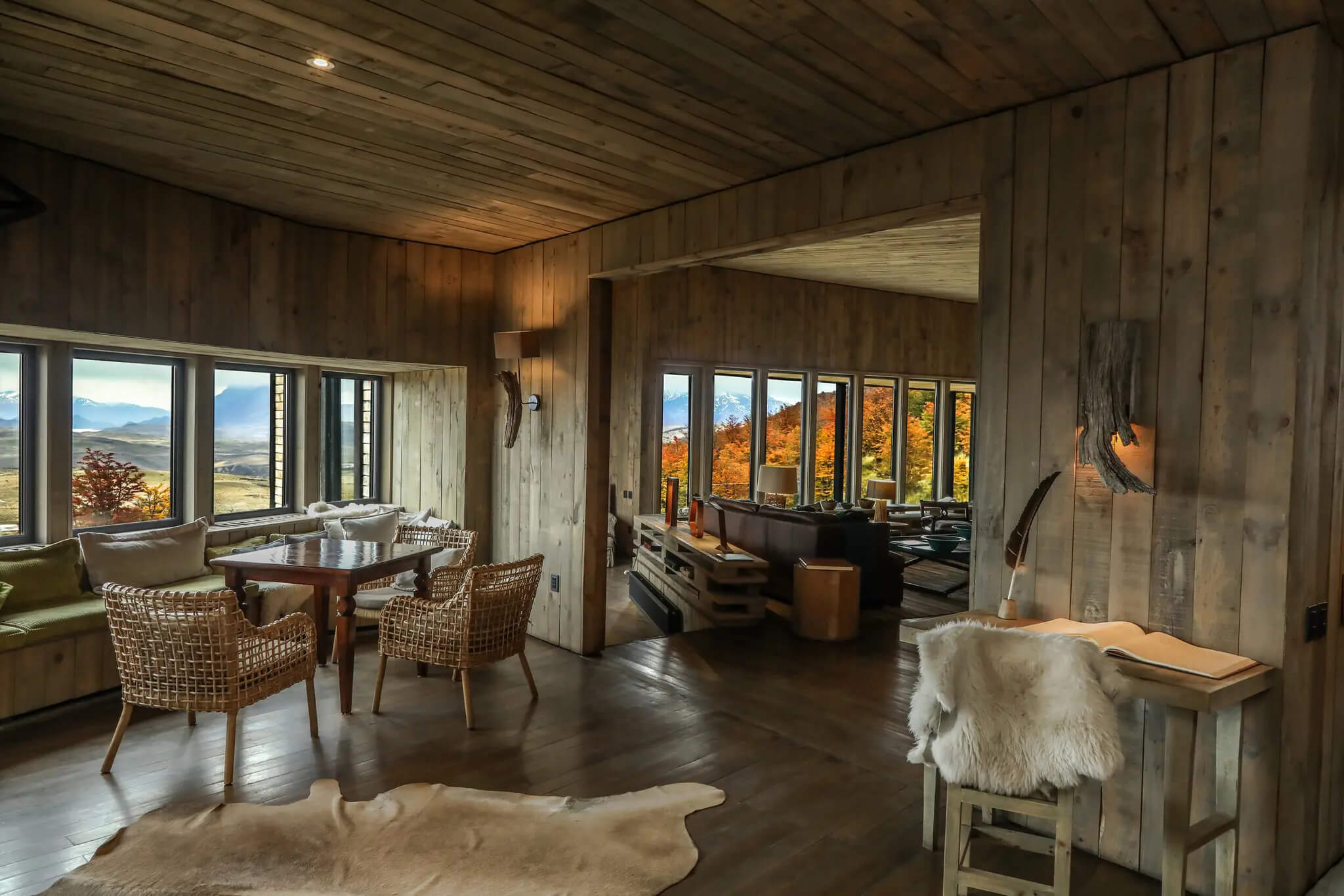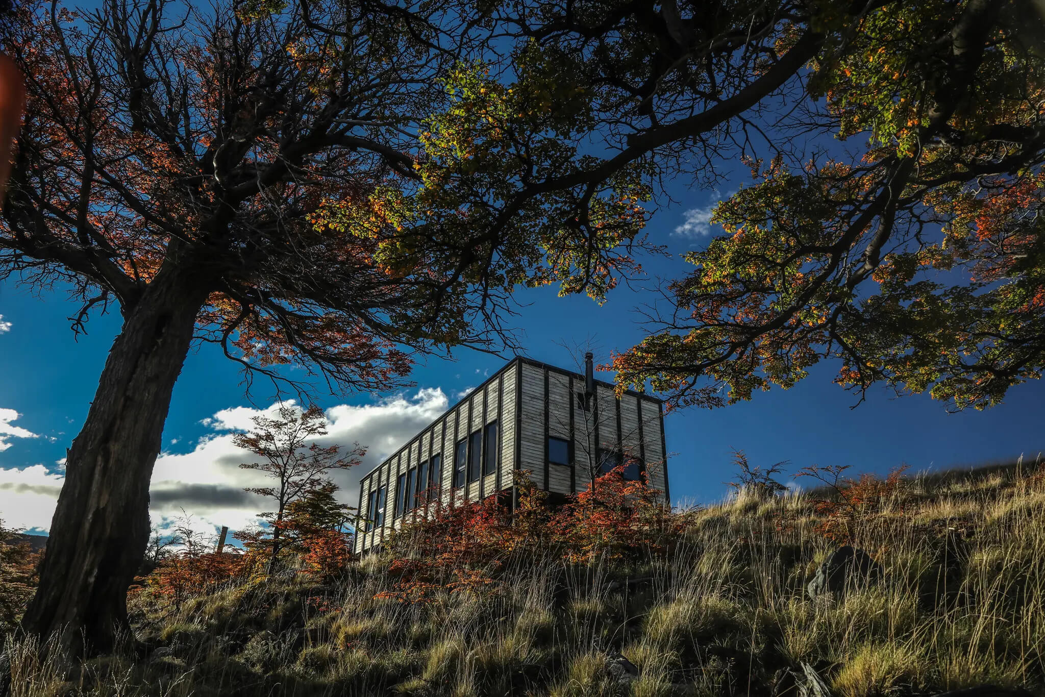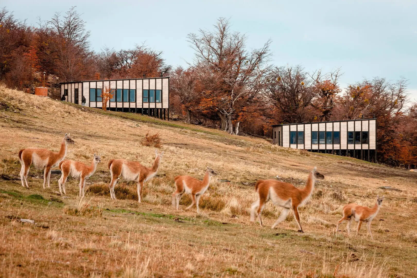 14 villas privées en bois local, inspirées des refuges traditionnels patagoniens :