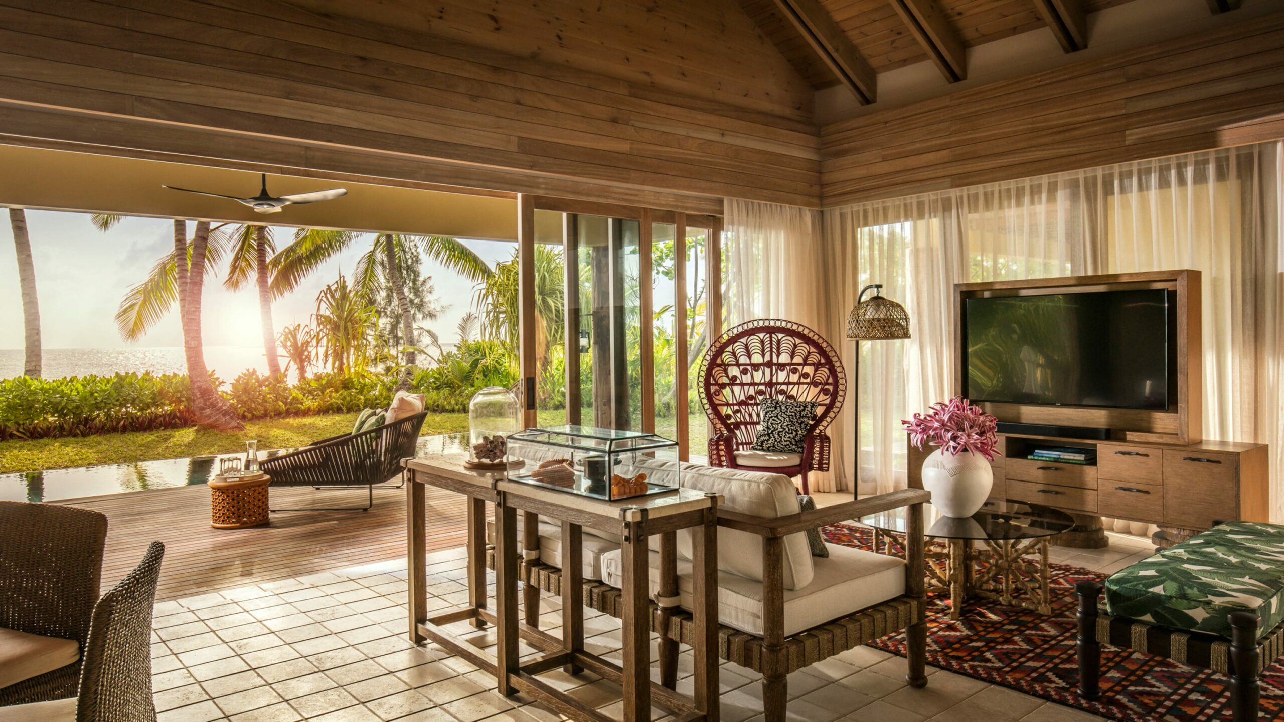 71 logements : villas, suites et résidences privées, avec climatisation, Wi‑Fi, TV HD, minibar, douche extérieure, majordome, literie haut de gamme, piscine à débordement, terrasse et accès direct à la plage :