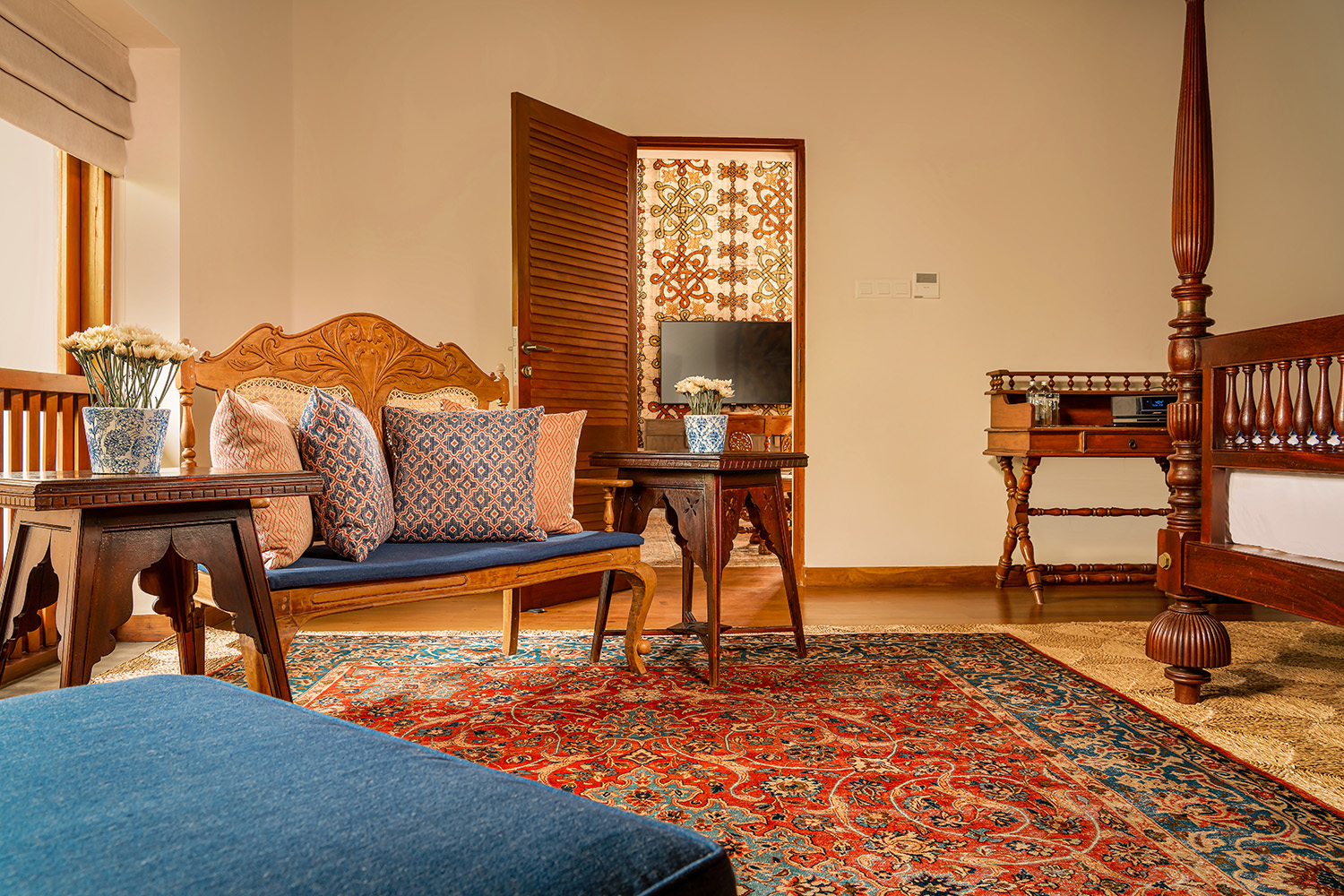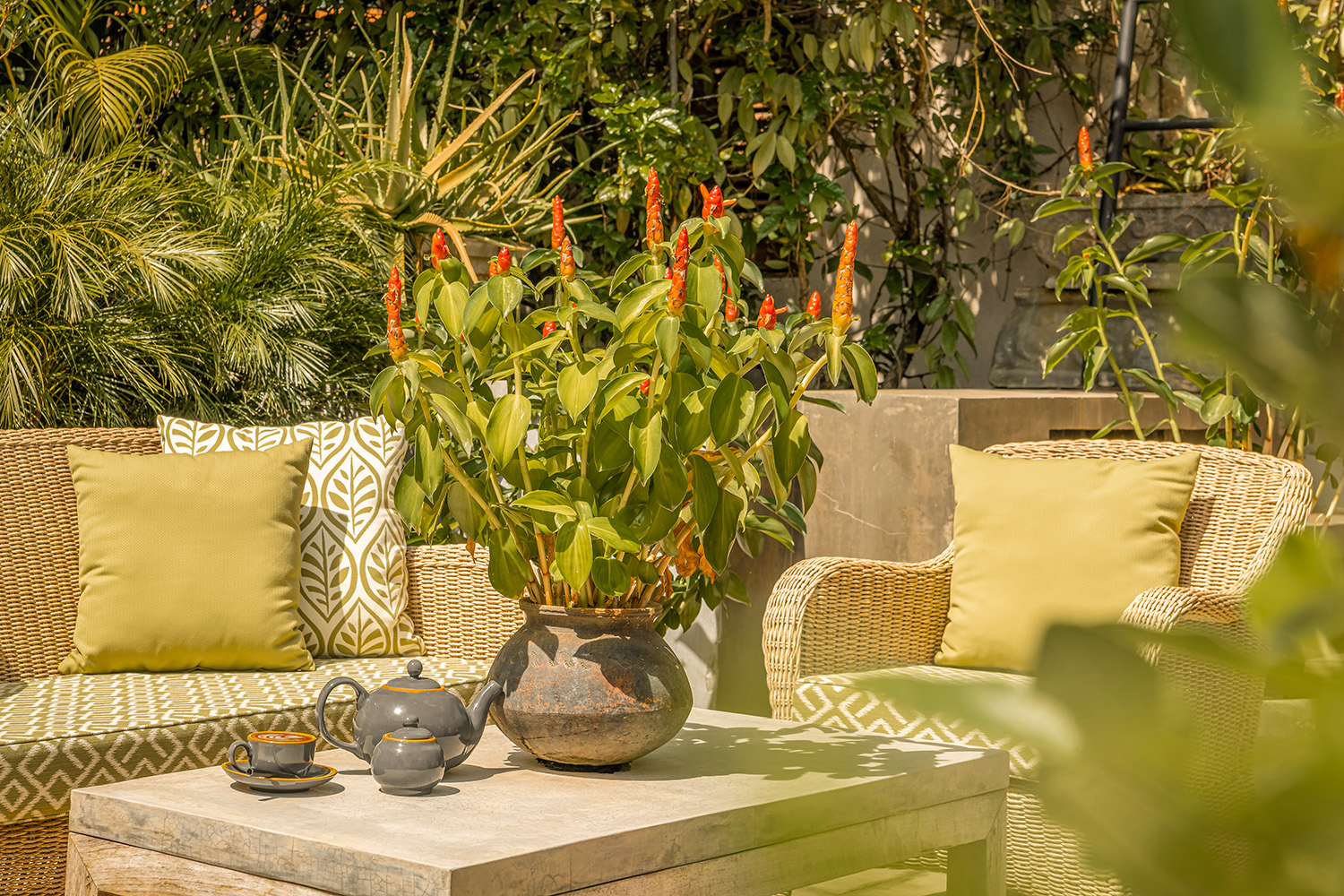 4 suites supersize autour d’un patio central verdoyant, chacune décorée avec un goût raffiné et des éléments coloniaux