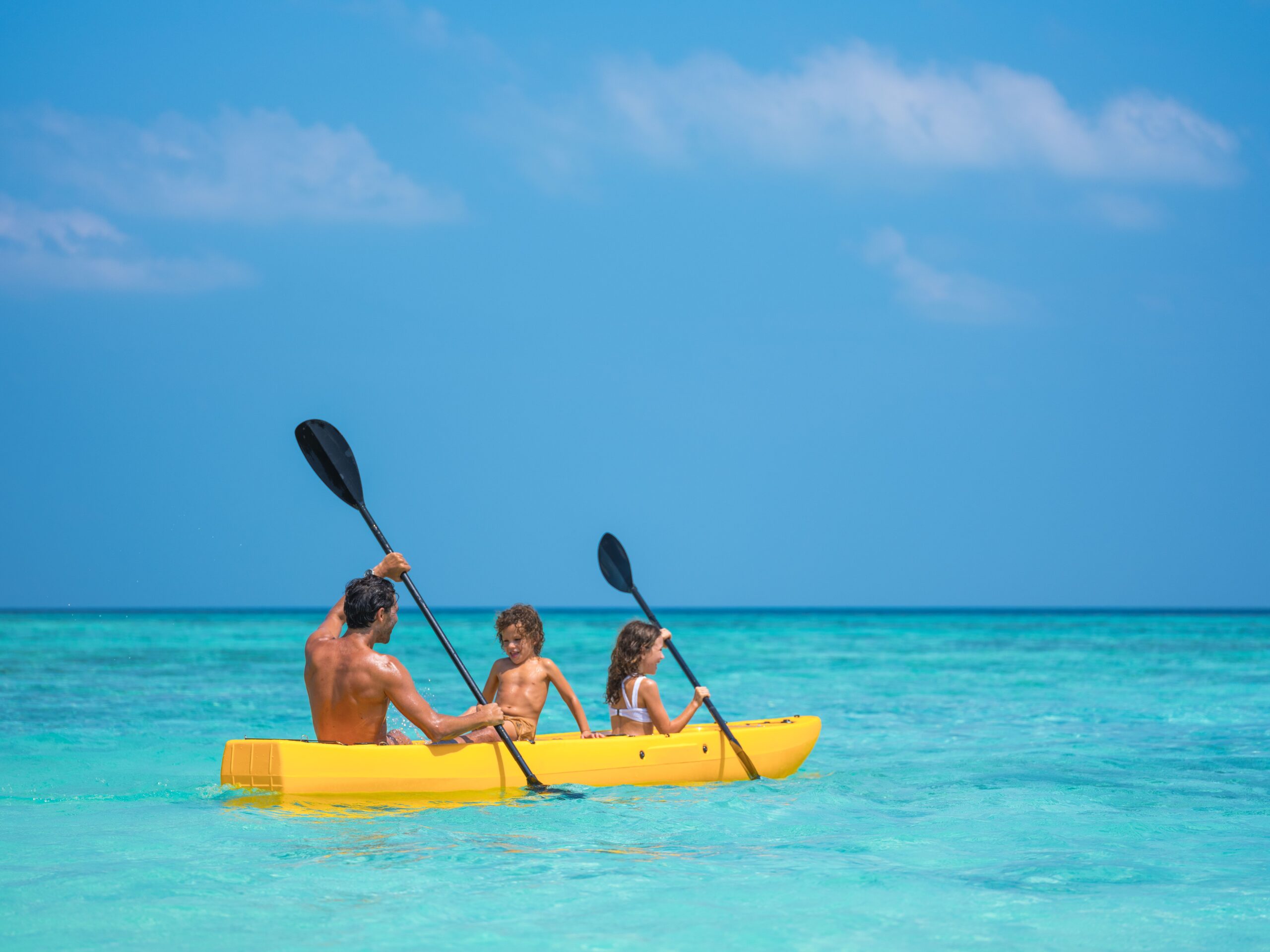 Sports & activités variées : kayak, planche à voile, stand-up paddle, sports nautiques, tennis, volley, club enfants (Parrotfish Club), club adolescents (Coconut Club)