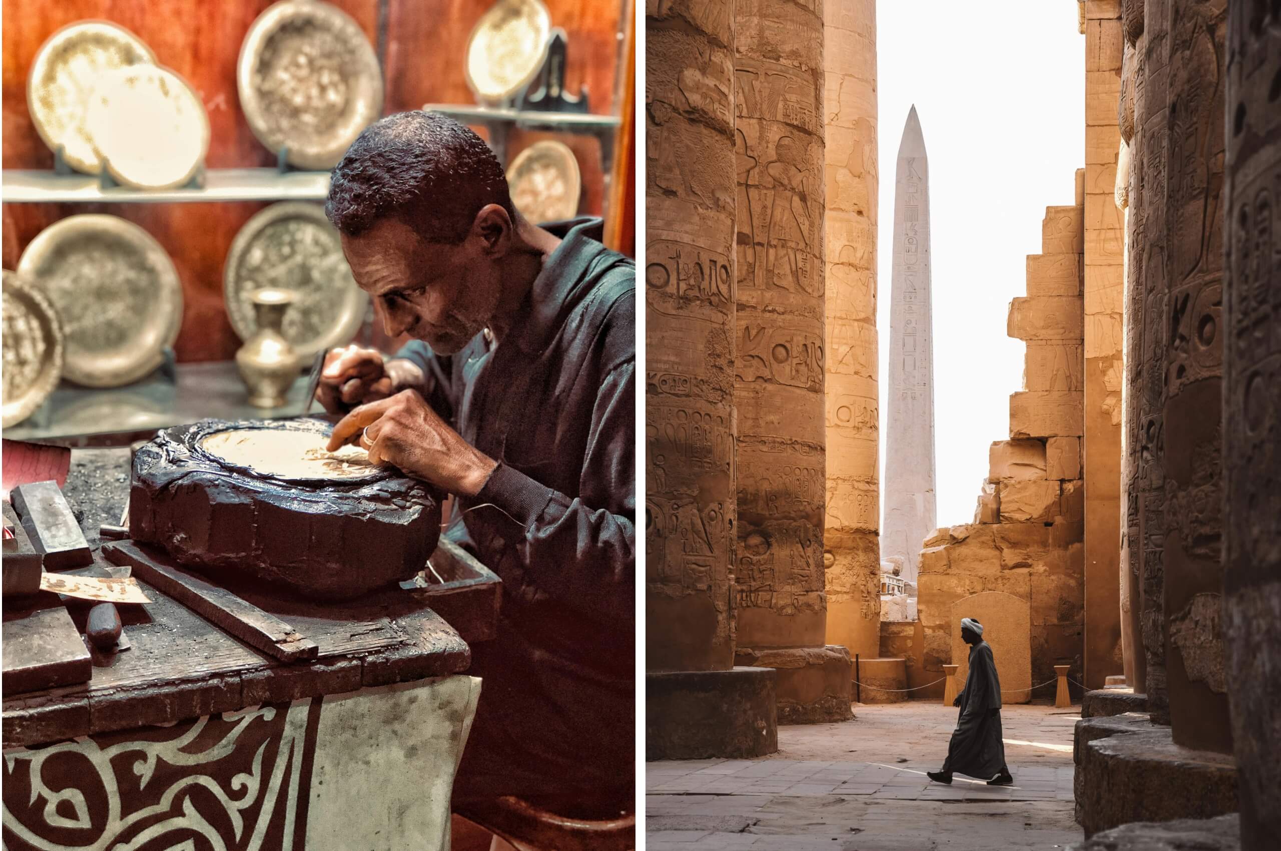 D’un côté, vous découvrirez l’effervescence du Caire, avec ses souks animés et la majesté des Pyramides de Gizeh, classées parmi les sept merveilles du monde antique. De l’autre, vous embarquerez pour une croisière tranquille sur le Nil, entre Louxor et Assouan, pour explorer des temples époustouflants et des tombes royales. L’Égypte est une invitation à un voyage hors du temps, où l’histoire prend vie sous vos yeux.